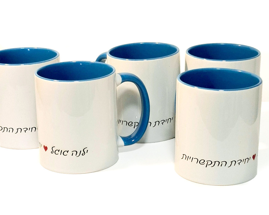 ספל פורצלן בעיצוב מודרני ונקי בתוספת צבעוניות מרעננת. צידו החיצוני של הספל צבוע לבן ומתאים לשימוש להדפסת סובלימציה הדפסה צבעונית של תמונה, טקסט או כל עיצוב מורכב אחר. ספל המתאים כמתנה שימושית וממותגת לעובדים בחברה, לקוחות,או לכל אירוע אחר.