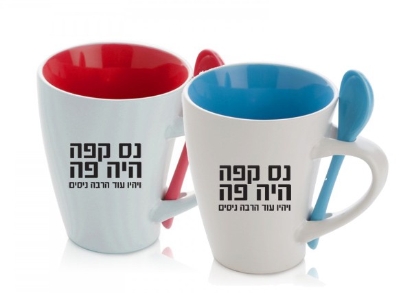 ספלים וכוסות מעוצבות באווירת חג החנוכה. ספלי פורצלן בעיצוב מודרני וצבעוניות מרעננת כוסות קפה עם דופן כלופה והכל ניתן למתג עם לוגו חברה, סלוגן או עם הגרפיקה שלכם לפי בחירתכם. שי נהדר לללקוחות, עובדי החברה בחגים ובאירועים שונים.