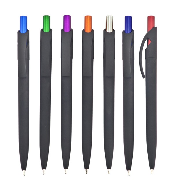 עטים מהווים פתרון אטרקטיבי פרסומי לחלק ללקוחות, ספקים וכדומה, עטים עליהם מוטבע מיתוג העסק. עטים איכותיים בצבע שחור מטאלי עם לחצן צבעוני שתוכלו להתאים לצבעי המותג שלכם. עט ג׳ל 0.7, בעל גוף פלסטיק עם גימור גומי, Free Fllow מקורי.