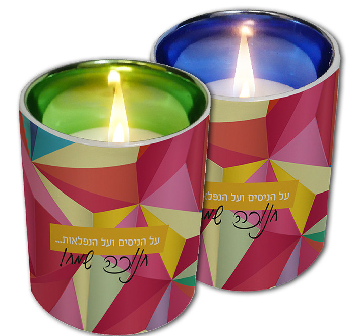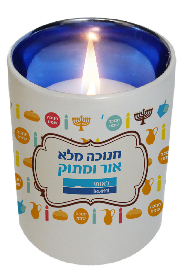 מאג ממותג עם נר בצבעים שונים. מתנה חמימה ונהדרת המתאימה לחגים ולכל אירוע אחר.