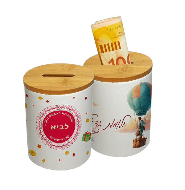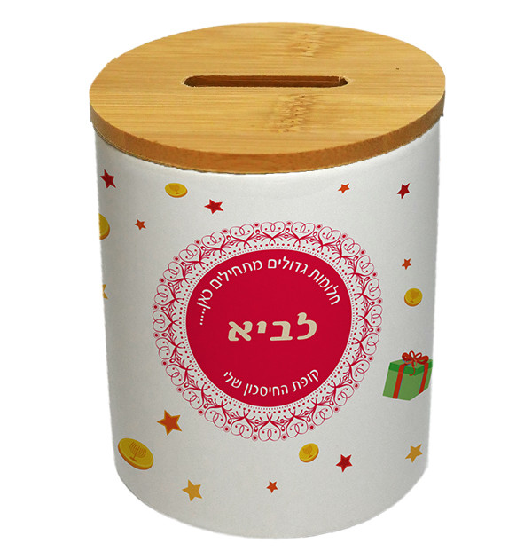 ניתן למתג את קופת החיסכון עם שם אישי, לוגו חברה או כל גרפיקה אחרת לפי בקשתכם.