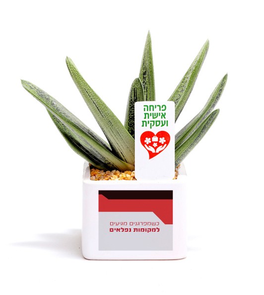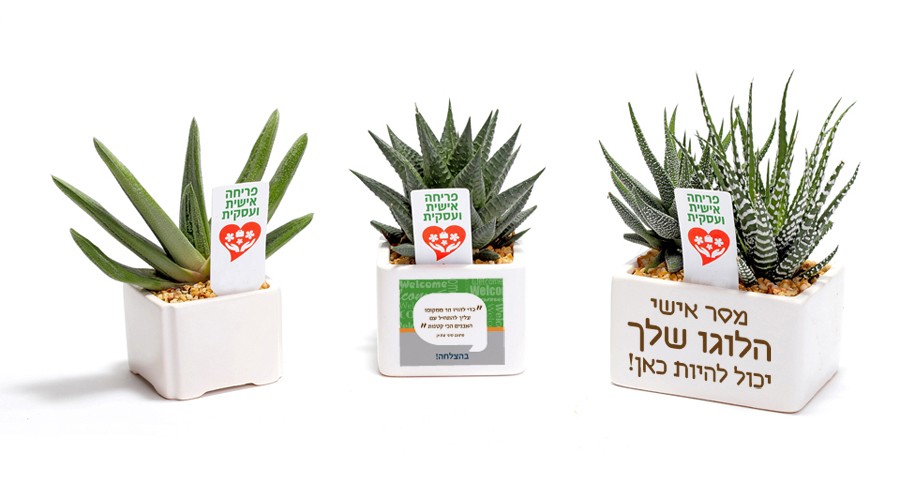 העציצים מגיעים עם מיתוג אישי של לוגו חברה, כיתוב המתאים לחג או לכל אירוע אחר, אפשר עם הגרפיקה שלכם, לפי בחירתכם.