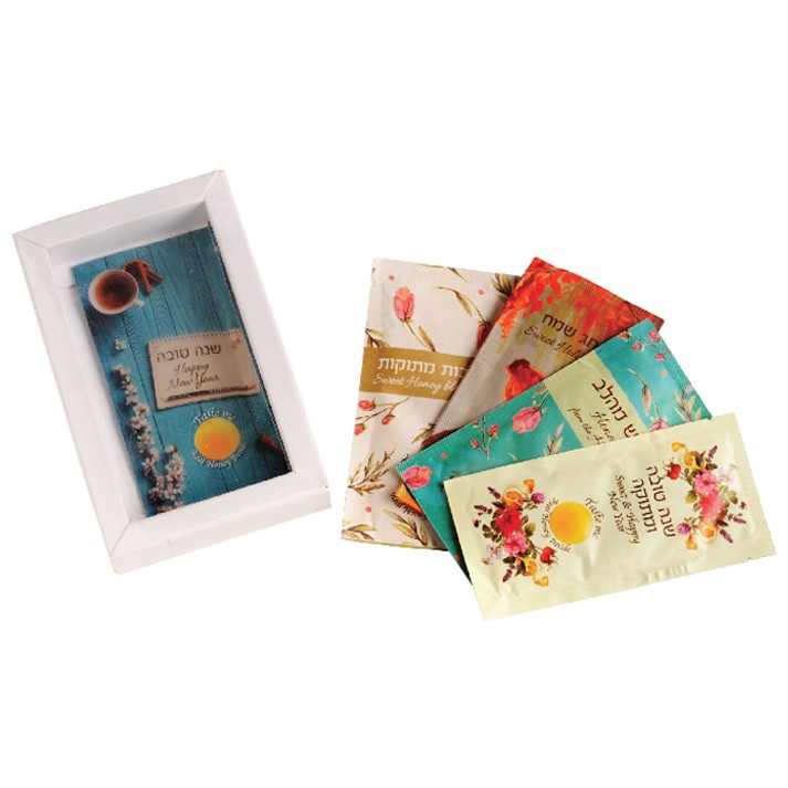 אחד מסמלי החג הוא דבש, מארז חגיגי עם 5 דבשונים. מתנה מתוקה המתאימה כתוספת לתלושים/תווי-שי לעובדים וללקוחות שלכם.