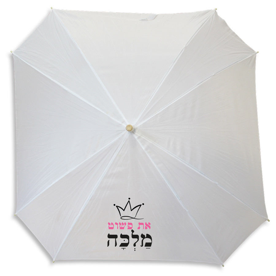 מטריה לבנה עם הדפסה בעיצוב אישי. מתנה נהדרת לימי החורף הגשומים.